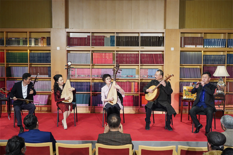 中國網北京2月6日訊 (記者 秦金月)近日,“金色回響——中央民族樂團《壬寅虎嘯》唱片分享會”在國家大劇院舉行,國家大劇院院長王寧、國家大劇院副院長宮吉成等嘉賓出席活動。著名民樂演奏家吳玉霞、趙聰、唐峰、馮滿天、牛建黨現場為樂迷們演奏了《春江花月夜》《絲路飛天》《云清風舞》《信天游隨想》等中國經典民樂曲目,并與此張專輯的錄音監制、著名錄音師李大康及國家大劇院唱片制作人趙爭一同,與觀眾分享唱片制作背后的故事。