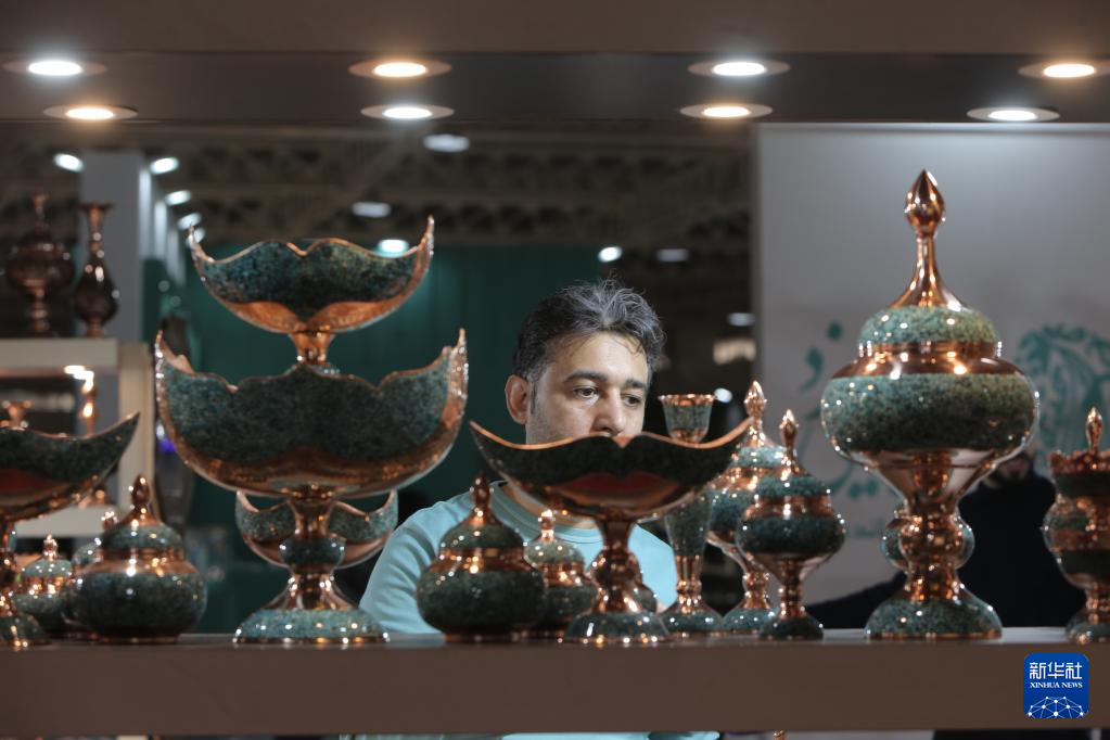 2月7日,參展商在伊朗德黑蘭展示手工藝品制作技藝。