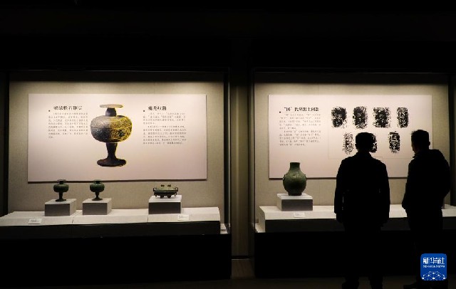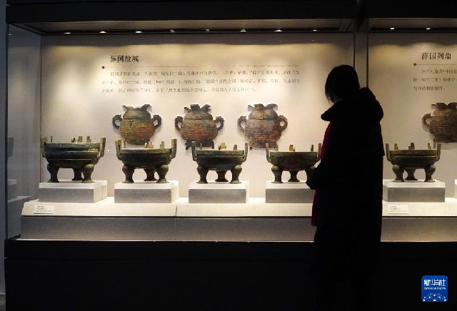 2月9日,在孔子博物館舉行的山東文物精品展上,參觀者在觀看濟寧市博物館收藏的春秋薛國列鼎。