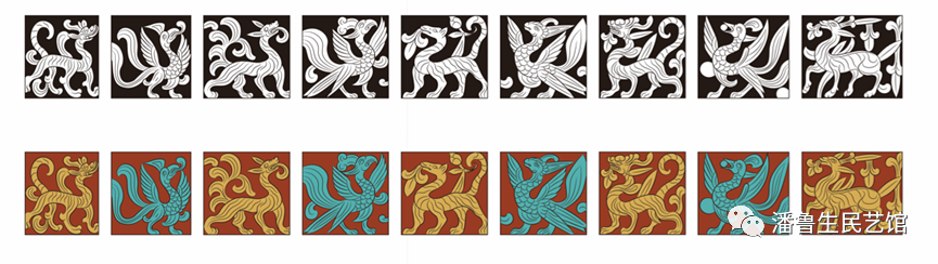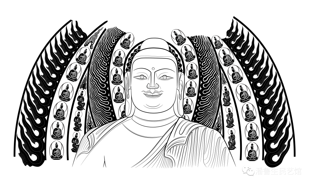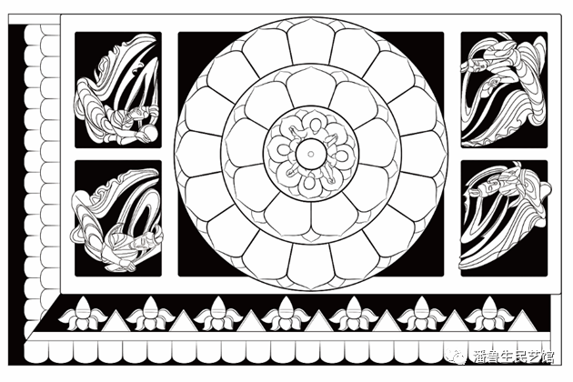 云岡紋飾的中心主題以佛教藝術為內核,一切紋飾皆圍繞像教的宣教主旨構建,主題的不同造就了不一樣的紋飾風格。從石窟開鑿結構上分類,云岡石窟形制主要有大像窟、佛殿窟、塔廟窟三種類型。龕是壁面裝飾的基本單位,對于一個龕,造像是裝飾的中心,而龕的基本單位是紋飾的單體結構,比如蓮花、忍冬的構成方式。從紋飾題材類型上看,云岡紋飾中最具有代表性的紋飾是忍冬、蓮花植物紋飾,以及龍、鳥等動物紋飾。云岡紋飾構成包括單體紋飾、適合紋樣、二方連續、四方連續等類型。此外石雕工藝的藝術特點,造就了云岡紋飾大量的角隅紋飾的應用,從而形成層次分明的套層結構,氣勢宏偉壯觀。造像是云岡紋飾的中心,云岡造像包括佛、菩薩、四眾、天龍八部等完整體系。根據造像主體形態差異,云岡工匠以龕為基本裝飾單位組織畫面,形成了穩定的圖式系統。