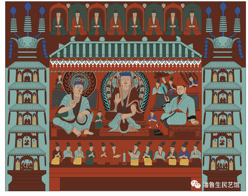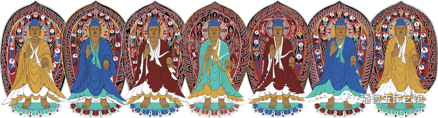 “紋飾”一詞來自于我國傳統的造型藝術概念,具有與圖案、紋樣相近的意涵。從字面上看,紋飾包括“紋”與“飾”兩個方面:紋即紋樣,主要解釋紋的名物是什么;飾即裝飾,說明紋樣結構和裝飾方法,要符合某種裝飾目的、結構和要求,在一定意義上,二者是相輔相成的關系。自古以來,中國各族人民創造了類型豐富的紋飾形態,每個歷史時期都形成了代表性的紋飾造型特征。從新石器時期彩陶紋飾,到青銅器、畫像石、瓷器、紡織品、玉器等歷代器物上的紋飾,這些既有民族文化特征又有時代印記的紋飾體系,包容在物質和精神文明發展歷程中。漢唐以來本土紋飾與佛教東傳過程中各民族的紋飾融合,形成了龐大的富有包容性的中華紋飾體系?!睹鲿洹酚小凹y飾以金”的記載,其意涵是指附飾于建筑、器物、服裝上的裝飾性花紋。以紋飾質,以紋表意,是中國人思想內質的外在表現。在佛教美術中,紋飾所表達的符號內涵正符合像教“以藝術入志”的宣傳和布道主旨,由此形成具有裝飾意味的紋飾體系構成。