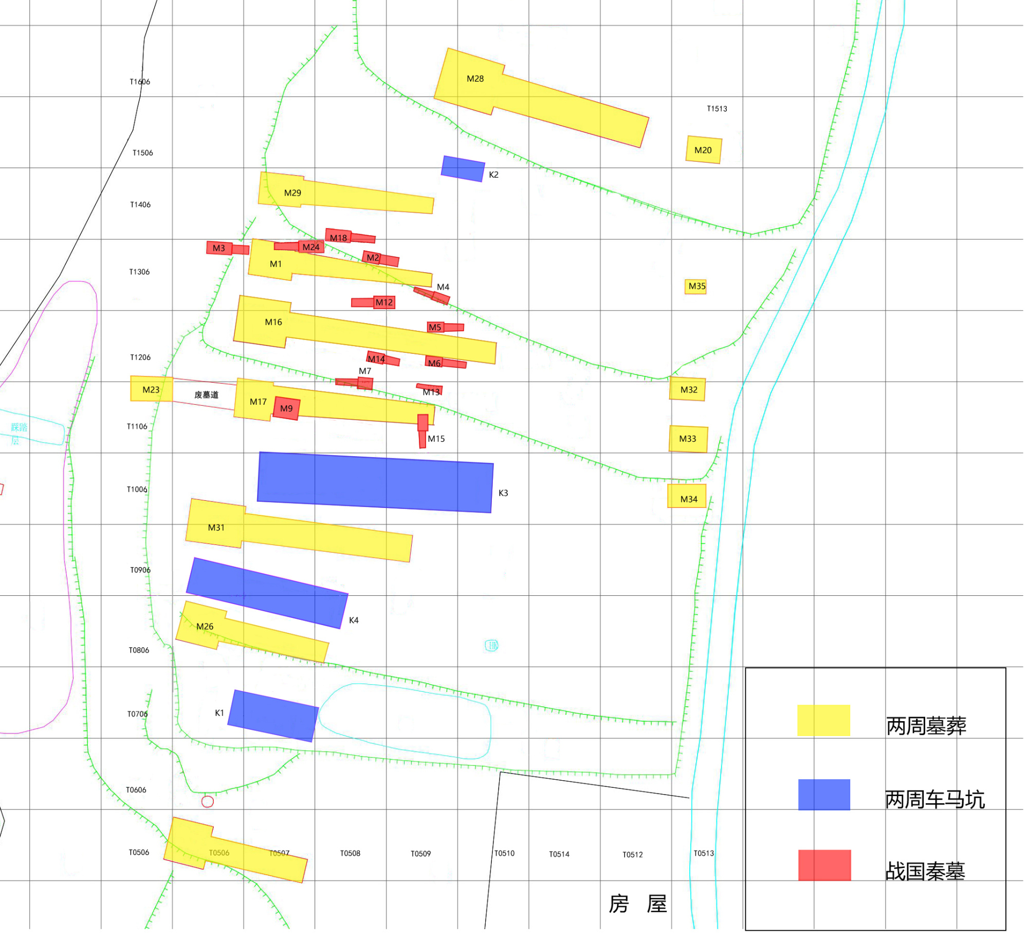 2020年5月至今,共布設探方兩處,分別是Ⅰ象限陶渠大中型墓葬區、Ⅳ象限西趙莊小型墓葬區,陶渠大中型墓葬區有“甲”字形大墓8座,由北向南依次排列,墓葬均為東西向,墓道在東側,M28、M17、M31、M26的南側發現有長方形車馬坑K1—K4。Ⅳ象限西趙莊芝水河南岸墓葬區發現小型墓葬4座。