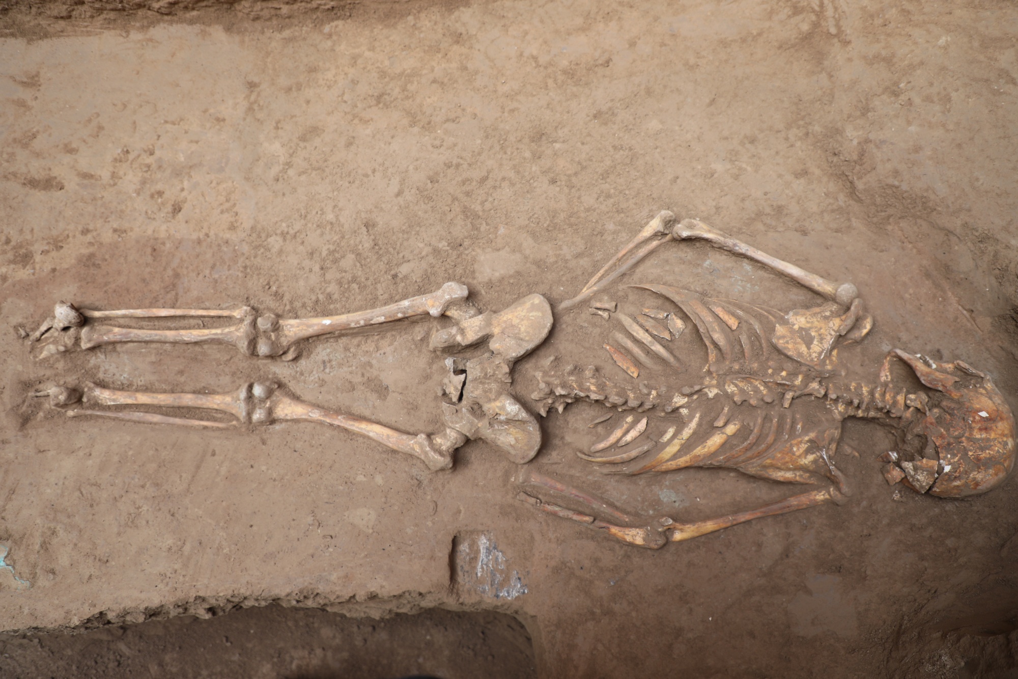 陶渠M29“俯身葬”殉人(央廣網發 陜西省考古研究院供圖)