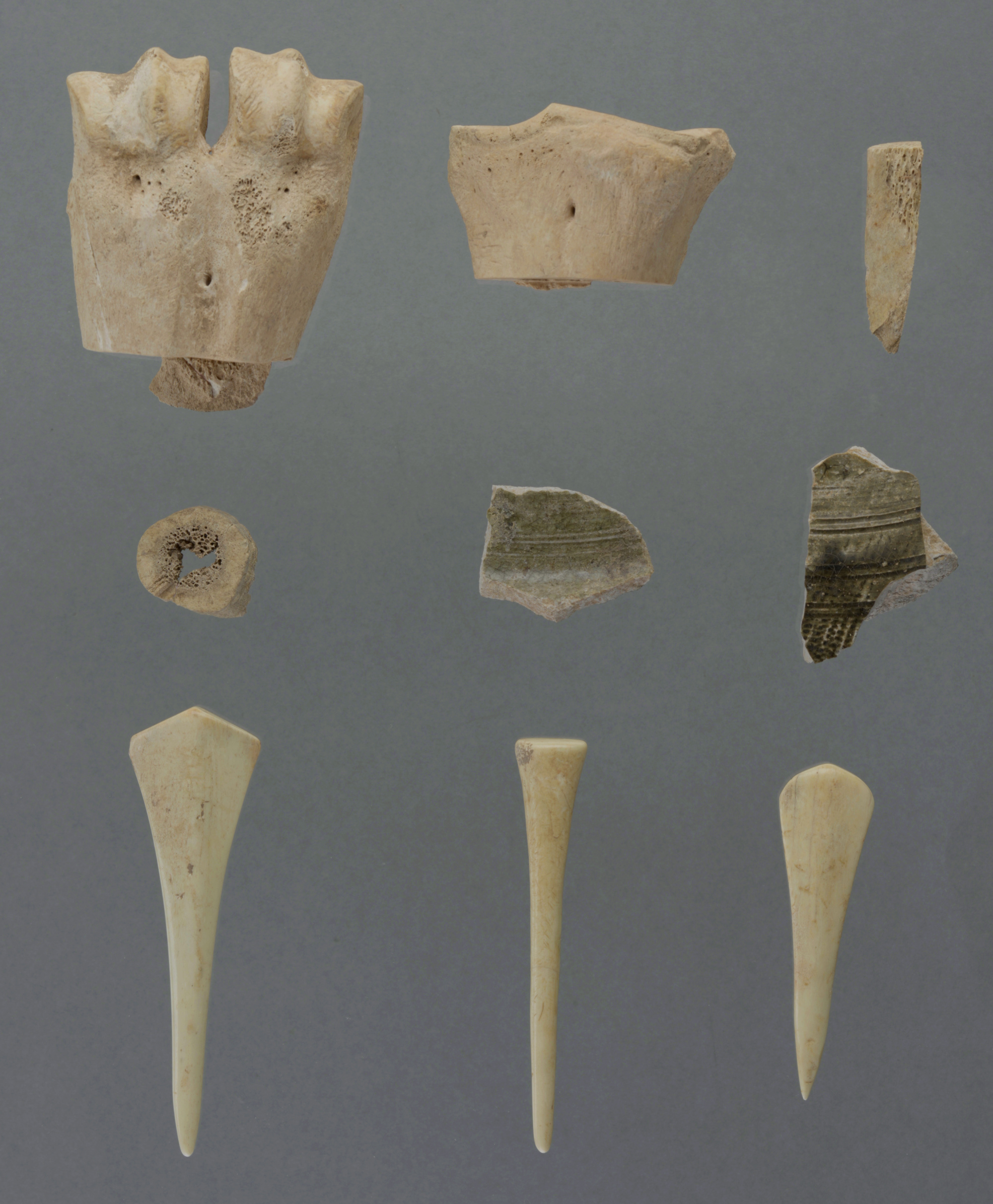 陶渠墓葬填土出土原始瓷片、骨笄與制骨廢料(央廣網發 陜西省考古研究院供圖)