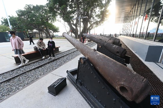 2月12日,游客在中國船政文化城核心區內的中國船政文化博物館前游玩。