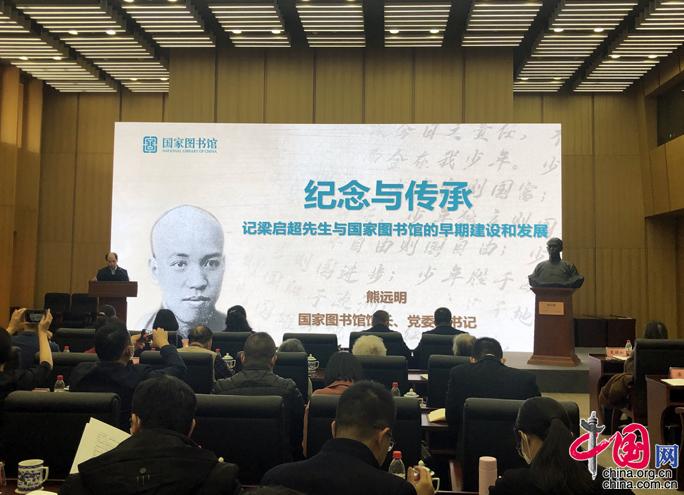 國家圖書館館長、黨委副書記熊遠明出席活動并作了題為《紀念與傳承——記梁啟超先生與國家圖書館的早期建設和發展》的報告,從籌措辦館經費、搜購中外圖書、統一中外圖書分類方法等三個方面,系統回顧和闡述了梁啟超為國家圖書館早期建設與發展所做的卓越貢獻及其深遠影響。
