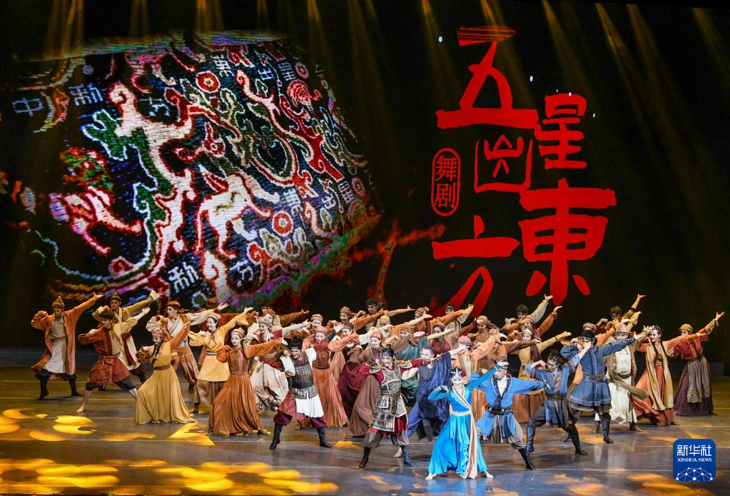 2月28日晚,舞劇《五星出東方》在新疆烏魯木齊京劇院上演。該舞劇以在新疆和田地區民豐縣尼雅遺址出土的“五星出東方利中國”漢代織錦護臂為題材進行創作。該舞劇在烏魯木齊連演三場之后,將于3月10至19日赴和田地區演出14場。