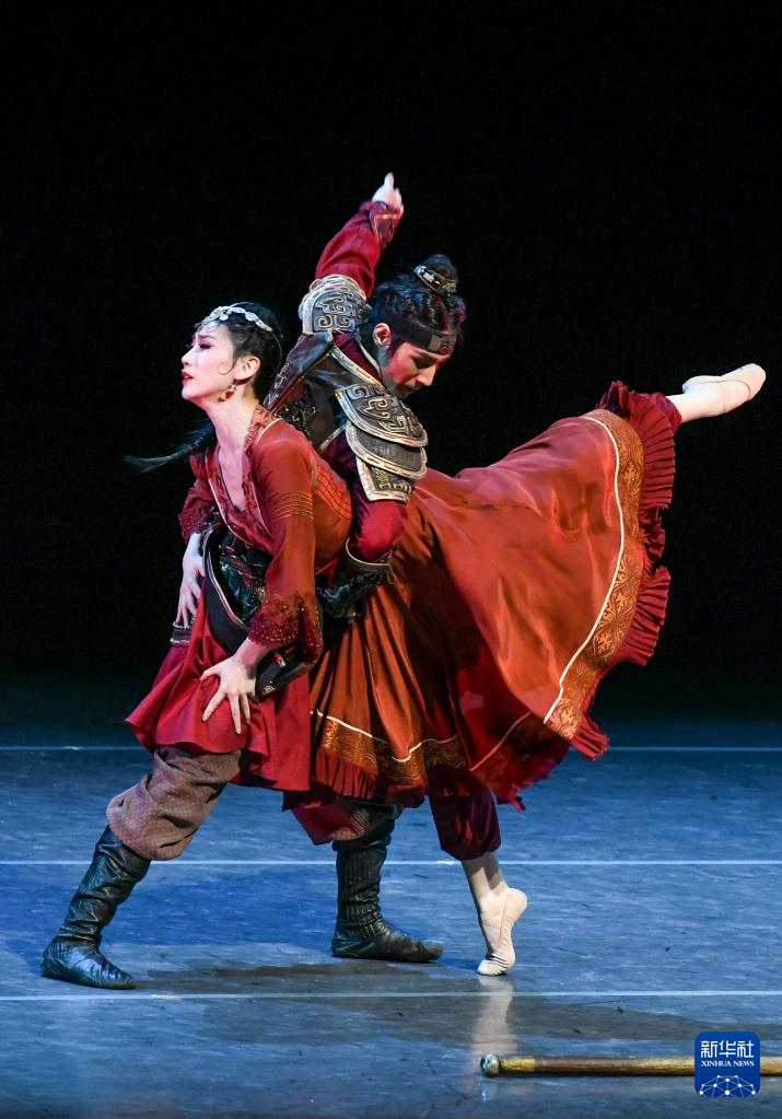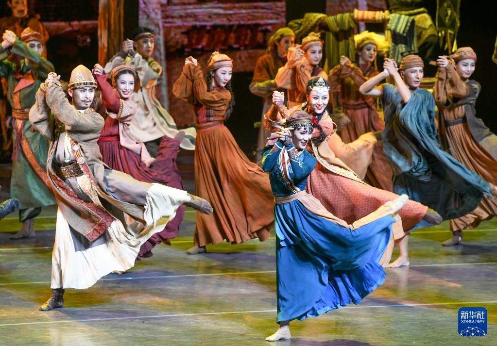 2月28日,在烏魯木齊京劇院,演員在表演舞劇《五星出東方》。
