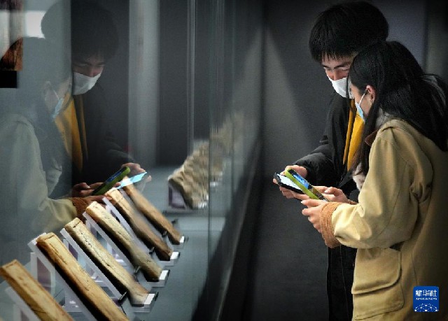 觀眾在鄭州大象陶瓷博物館觀看展品(3月1日攝)。