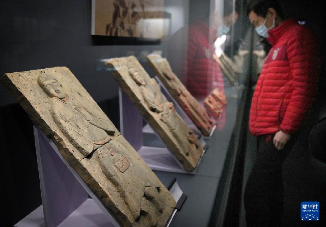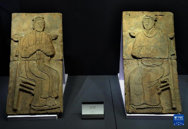 這是在鄭州大象陶瓷博物館舉行的“宋人生活與二十四孝磚雕展”上展出的夫婦磚雕(3月1日攝)。