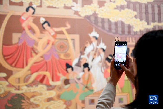 游客在洛陽市應天門遺址博物館內參觀拍照(2月28日攝)。