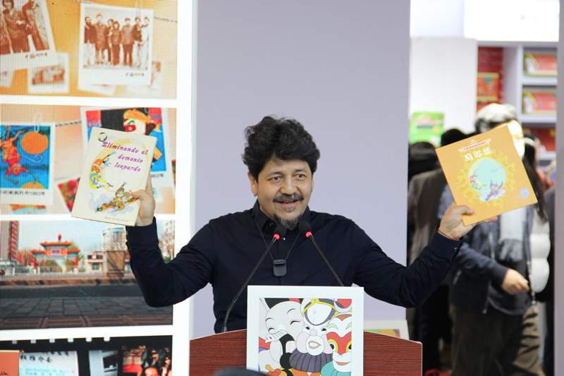 來自哥倫比亞的藝術家、導演李戈作為讀者代表,分享了他與“美猴王”的故事。李戈童年時深受“美猴王”系列的影響,更以此為起點,與中國文化結下了深厚情緣。他8歲時看到了西班牙語版的《美猴王系列》,深深愛上了這個萬里之外的超級英雄,開始癡迷中國美術和中國文化,以至于長大后不遠萬里來到中國求學,作品中處處可見中國美術的影子,更是娶了一位四川姑娘做妻子。