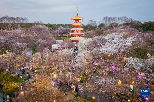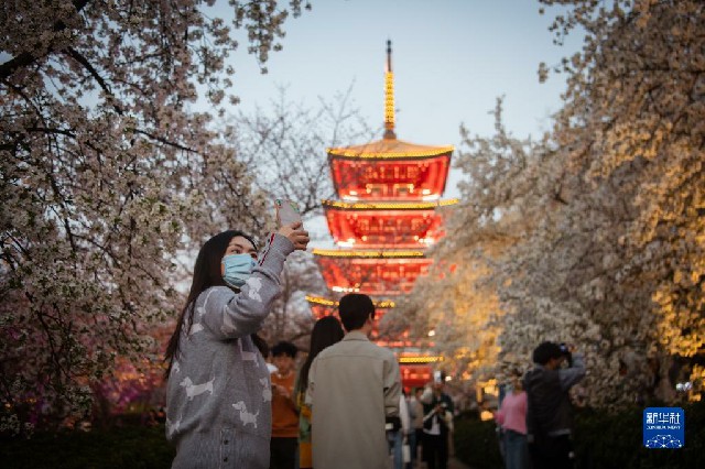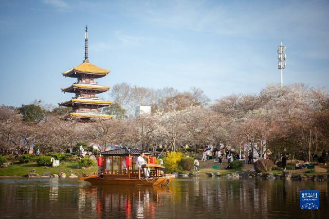 近日,湖北武漢東湖櫻園的櫻花競相綻放,吸引眾多游客前來踏青賞花,樂享春光。
