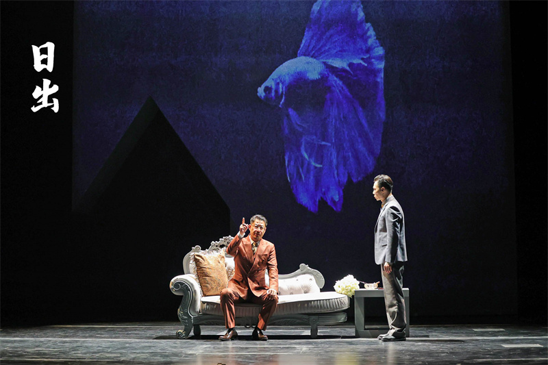 2021年,北京國際戲劇中心開幕,開幕大戲就是這部全新版的《日出》。這種“新”既是創作理念上的新,舞臺形式上的新,演員陣容上的新,也是一種對經典的全新視角、全新解讀。在舞臺上,觀眾既能看見充滿象征的游動的金魚,氤氳的霧氣凝結成的水滴,會呼吸的光影墻等現代感十足的形式;也能看到在攝影機的投射下,不同空間產生的畫面實時投映,使觀眾一改對故事的傳統印象?!安粩嘧x《日出》,會發現換了角度會完全不一樣,我們這版可以說是男主角方達生眼中的故事,也許未來,我們還能從別人的角度去解讀?!?/p>
