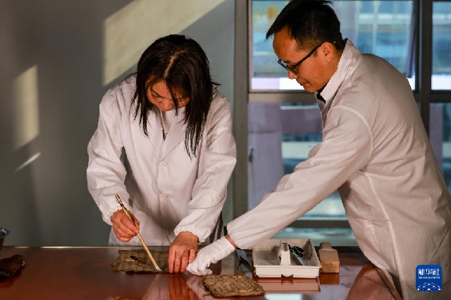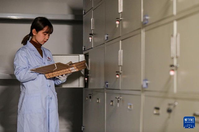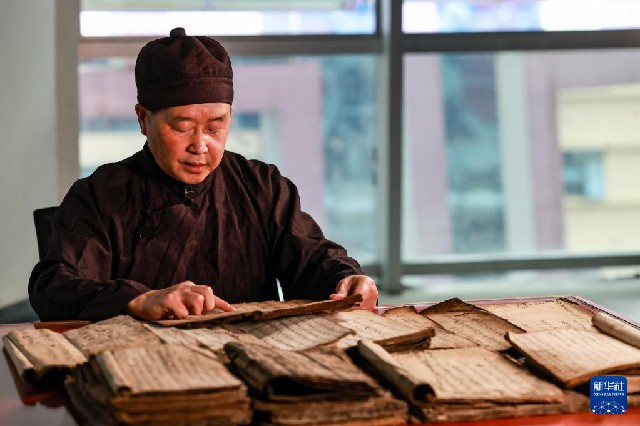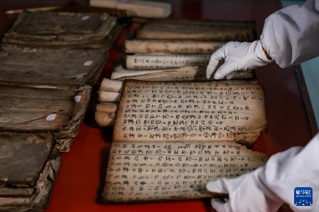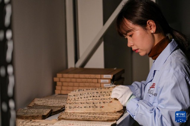 3月17日,貴州省民族博物館的工作人員在整理水書文獻。