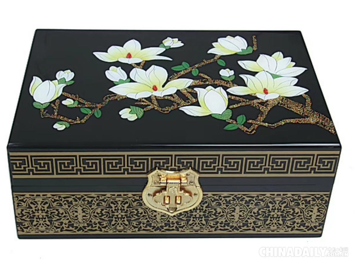 “推光漆首飾盒是我們平遙人婚禮上必不可少的元素?!崩钣袷峭辽灵L的平遙女孩,“你看像這款紅色的就是植物的大漆調配了朱砂,然后再采用我們推光漆的修飾技藝,修飾出上面的圖案來,代表和和美美,我想選它作為班里外教的結婚禮物,送上一份獨具特色的祝愿?!逼竭b推光漆器早已成為滿含文化意義的“中國禮物”。