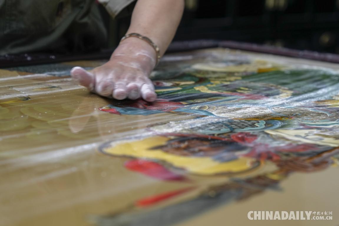 “我做了一輩子漆器,20歲剛出頭就到平遙推光漆器廠工作,拜名家喬泉玉為師學習漆藝,后來在自家院子建起了推光漆工坊。2016年,我在政府支持下成立漆藝研究院,恢復了失傳的堆鼓罩漆技藝,還把平遙推光漆器髹飾技藝從過去的3種增加到20多種。晉中市2010年就成為國家設立的文化生態保護實驗區,保護傳統文化的氛圍越來越濃?!碑斈臧輲煂W藝的薛生金如今已經86歲,他短短幾句話間,道出了平遙推光漆技藝的過去、現在與未來。