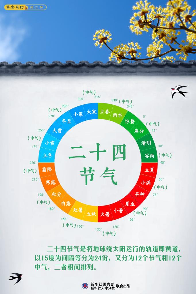 二十四節氣以角度均分,間隔時間平均應為15.2天,但實際上并非如此。這是因為地球圍繞太陽運行的軌道是橢圓形,且距離太陽的遠近也不相等。地球運行到近日點時(公歷1月4日前后),速度較快,跨15度的時間短,每個節氣14-15天;當地球運行到遠日點時(公歷7月6日前后),速度較慢,跨15度需要的時間延長,每個節氣是15-16天。