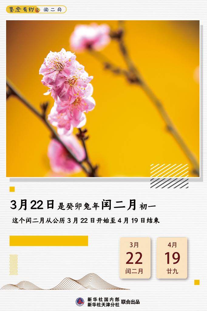 3月21日農歷二月三十,是中氣春分,下一個中氣谷雨在4月20日農歷三月初一,這當中的3月22日至4月19日的農歷月中只有一個節氣清明,沒有中氣,所以這個農歷月就定為閏月。因為它的前面是二月,所以叫閏二月。