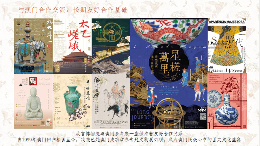 據故宮博物院國際交流處(港澳臺辦公室)副處長董丹表示,近年來,故宮博物院充分利用同香港、澳門文博機構在中外文化交流中的合作優勢,組織策劃精品出境展覽,打造文物對外宣傳品牌,向國際社會展示博大精深的中華文明,提升國際文化傳播效能。