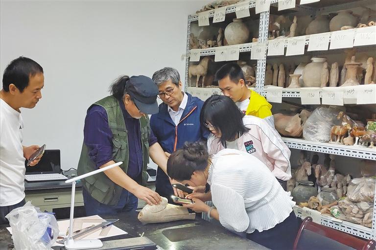 西北工業大學教授楊軍昌(左三)和他的文保團隊。本報記者 郭青 攝