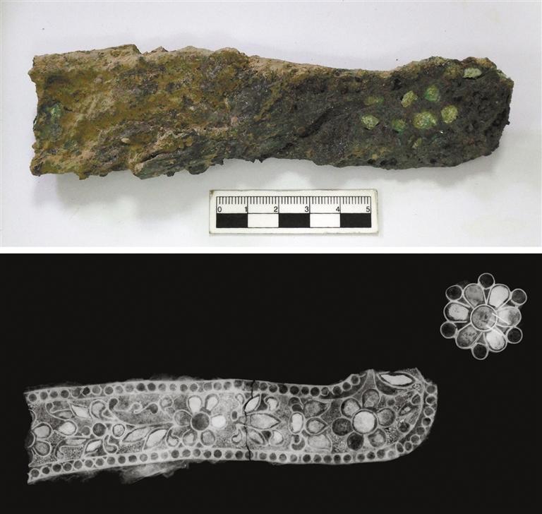 本報記者郭青攝 X光片清晰顯示出裝飾圖案(下圖)。