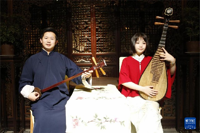 4月5日,演員在蘇州網師園內演奏江南絲竹。