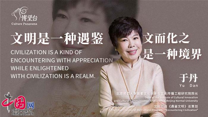 于丹多年來一直致力于中華優秀傳統文化的研究和傳播。如今,由她擔任總策劃,以“中外文明交流互鑒”為主題的大型季播文化節目《遇鑒文明》在央視國際頻道播出,受到廣泛關注。