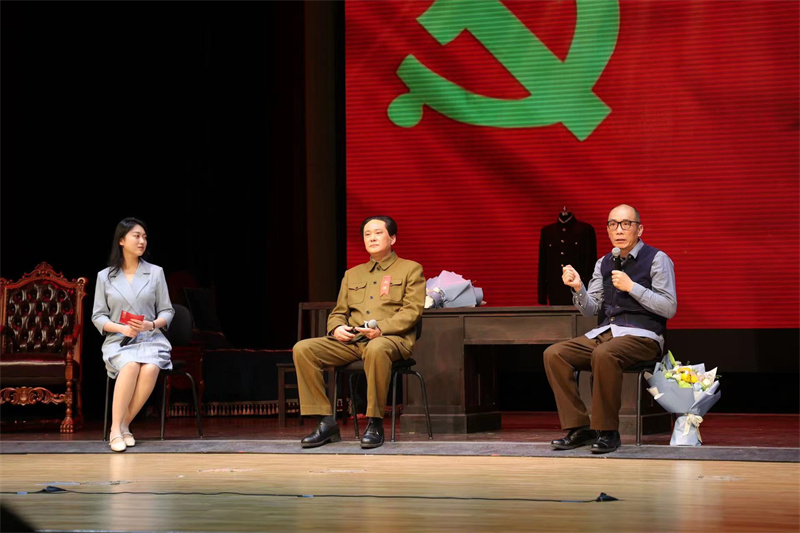 演出結束后,主創人員與北航師生進行演后談?,F場氣氛熱烈,師生們紛紛表達自己觀演后激動的心情——“整場演出都非常精彩,完全符合我們對人藝的期待。無論是演員的表演,燈光、效果的處理,都給了我們非常多的靈感?!薄懊棵炕仡欉@段歷史,都會心潮澎湃,共產黨人為人民服務宗旨,江山就是人民,人民就是江山,毛主席進京趕考取得了巨大成就。接力棒到我們這代人手上,新的趕考之路必將再創新輝煌,第二個百年奮斗目標一定能夠實現?!?/p>