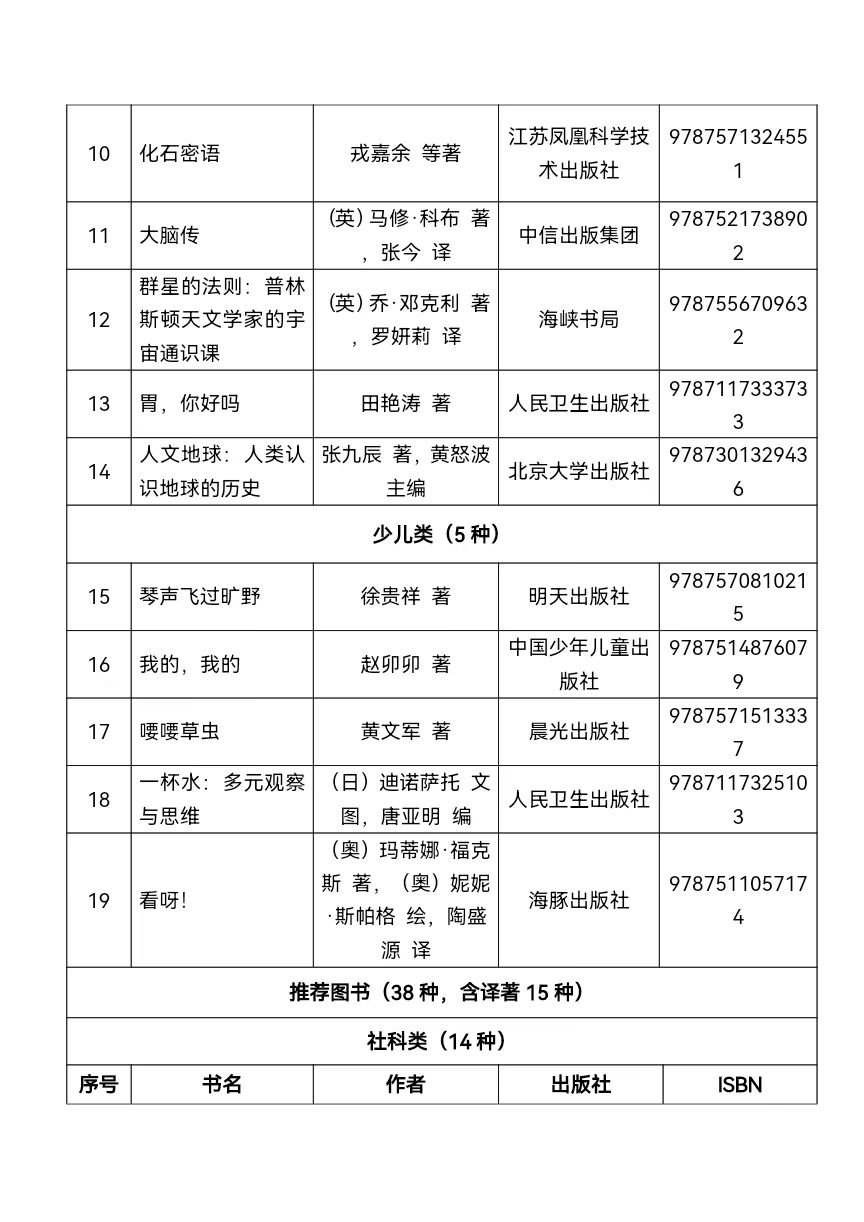 科普類圖書,涉及量子力學、化學、腦科學、天文學、醫學、地球科學、數學、植物學、生物學等諸多領域;題材新穎,有院士團隊創作的“大家小書”,有一線醫生的健康科普,有作者數十年的研究成果展現,有掃碼拓展閱讀,還有一些圖書講述了作者的個人科研經歷,飽含對科學探索的滿腔熱忱。
