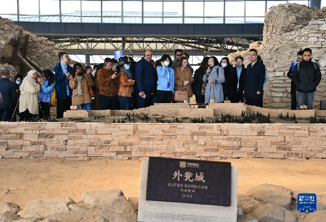 當日,參加亞洲文化遺產保護聯盟大會的多國代表、東盟成員國來賓和相關國際組織代表來到陜西石峁遺址實地參觀調研文化遺產保護情況。