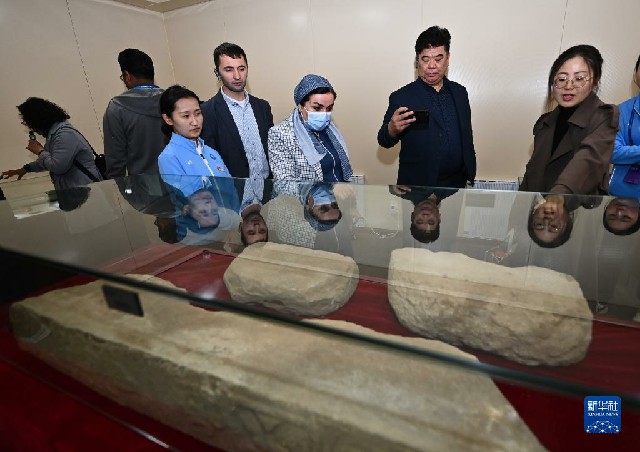 4月26日,外賓在陜西石峁遺址文物醫院展廳參觀調研。