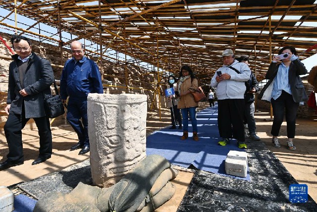 4月26日,外賓在陜西石峁遺址皇城臺遺址參觀調研。