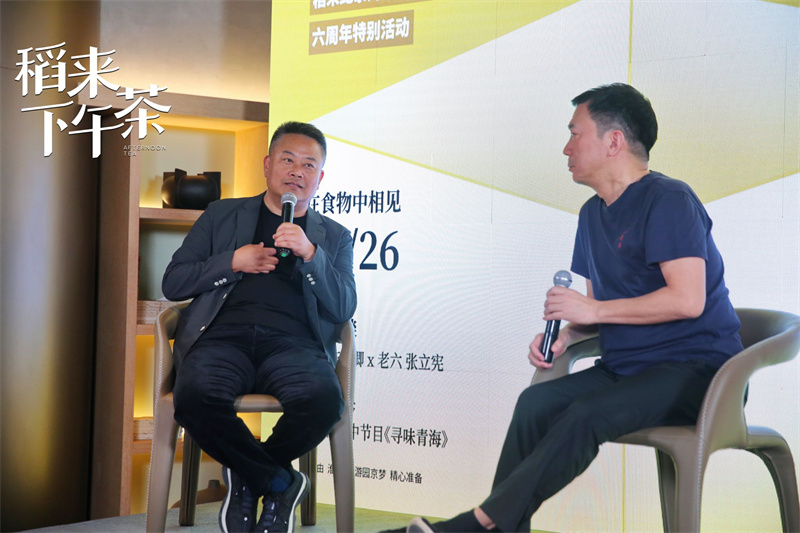 現場觀眾也在“稻來下午茶”首次欣賞了制作中的美食紀錄片《尋味青?!肪势?。陳曉卿、張立憲與該片總導演劉殊同在放映后接受了大家的熱情提問,分享了關于紀錄片創作的精彩趣聞?,F場觀眾還品嘗到了青海杏皮水和青稞奶茶、牦牛酸奶等特色美食,忍不住為《尋味青?!诽崆敖o出了五星好評。陳曉卿表示,希望能通過美食紀錄片傳達給大家關于美食、關于生活的幸福感,“沒有一個地方是美食荒漠,每塊土地上都有動人的食物?!睆埩梽t向觀眾強烈推薦了青稞奶茶,甚至忍不住調侃:“桌上吃不完的走的時候可以打包嗎?”