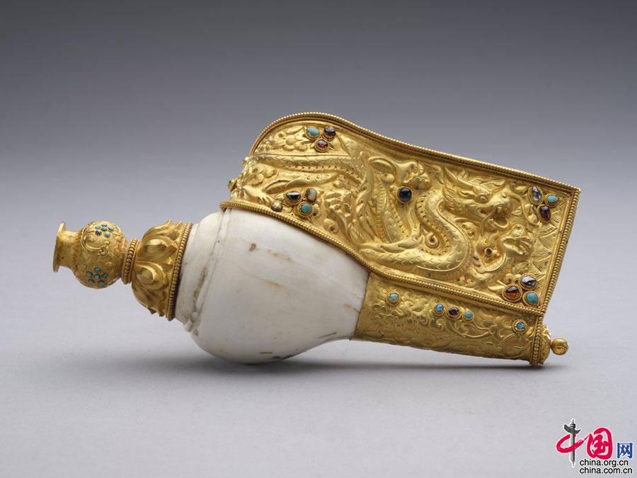 金鏨花嵌寶石銀里右旋白螺 清(1644-1911)(故宮博物院藏)