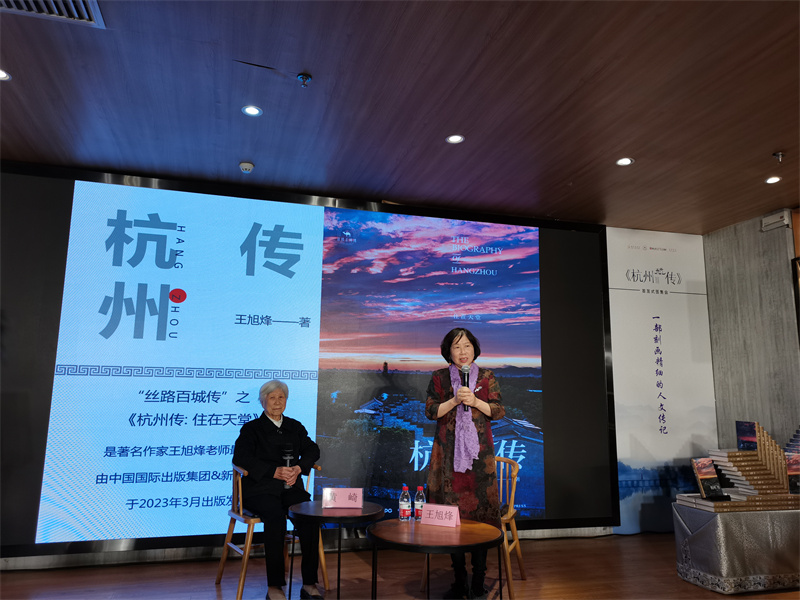 中國外文局副局長、“絲路百城傳”叢書編委會常務副主任陸彩榮表示,在杭州解放74年紀念日這個特殊日子里舉辦《杭州傳》首發活動,就是為了向杭州的新生獻禮,向包括作者王旭烽老師的父親王樹桂前輩等解放杭州的英雄以及向杭州建城兩千多年來的各路英雄豪杰致敬!在發言中,他闡述了“絲路百城傳”叢書立項的背景并簡要介紹了目前進展,并著重介紹了《杭州傳》在叢書中的意義:無論地理形態(京杭大運河、浙東運河與仙霞古道等)還是物產商貿(絲綢、茶葉和瓷器等),杭州自古都是“一帶一路”傳統上的源頭和起點,對連接國內、溝通中外起到極為重要的作用。從新時期互聯網發展來看,杭州則是網上絲綢之路的重要起點。而良渚古城、跨湖橋等文化遺址的考古發現和開掘,更加力證杭州是中華文明的發祥之一?!敖z路百城傳”叢書將杭州列入首批項目計劃并力邀著名作家王旭烽老師來撰寫的初衷即基于此。陸彩榮對王旭烽在身體抱恙、創作和教學各種事務極為繁雜的情況下,仍然高質量地完成《杭州傳》表達了特別感謝。他認為,作為“絲路百城傳”叢書中最新的一部極有分量的作品,《杭州傳》以完整均衡的結構、簡潔通達的敘事、內在呼應的邏輯為城市傳記寫作樹立了新的范本和標高?!逗贾輦鳌酚⑽陌嬲诜g中,即將于近期出版,相信這部作品在中外文化交流、文明互鑒中將發揮更大的作用。