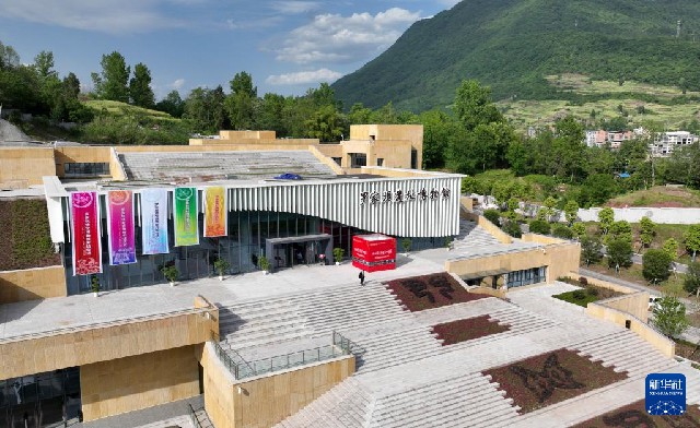 這是羅家壩遺址博物館外景(4月26日攝,無人機照片)。