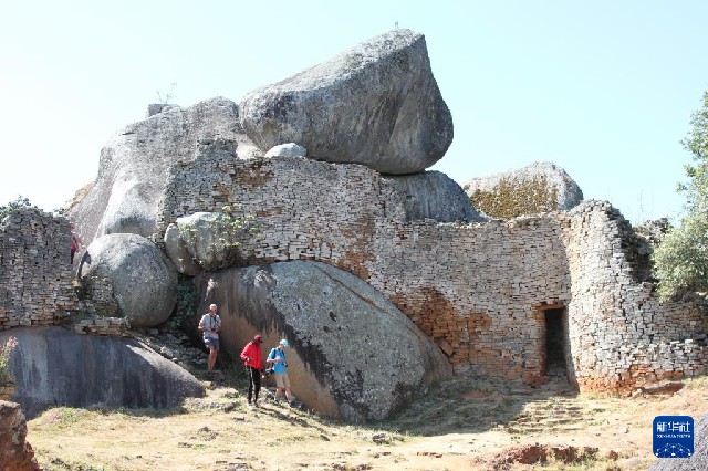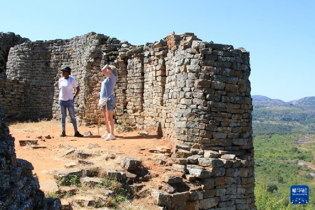 5月5日,游客在津巴布韋馬斯溫戈參觀大津巴布韋遺址。