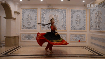 “左旋右轉不知疲,千匝萬周無已時。人間物類無可比,奔車輪緩旋風遲?!背錆M活力的跳躍和旋轉是胡旋舞最顯著的特征。而經過千年的融合與傳承,這一元素已深深融入到中國和中亞國家多種舞蹈形式當中。