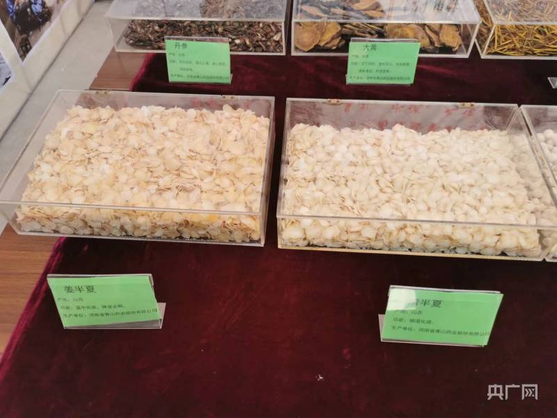 青山藥業傳統炮制長廊陳列的中藥產品(央廣網記者 彭華 攝)