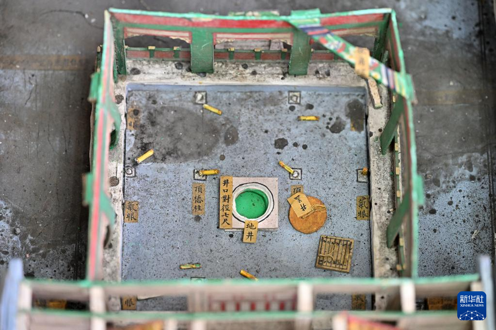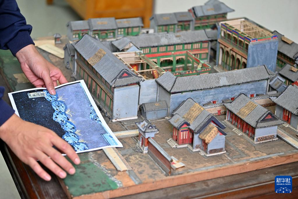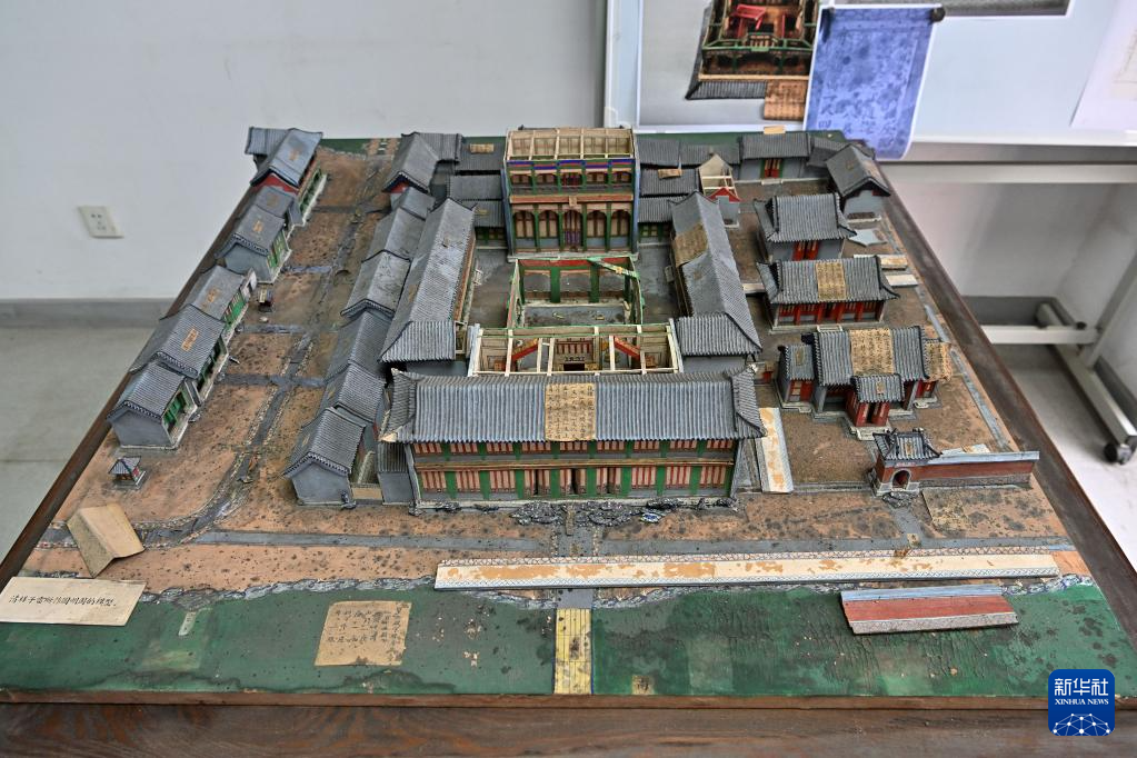 這是修復中的圓明園同樂園建筑群樣式雷燙樣文物(5月16日攝)。