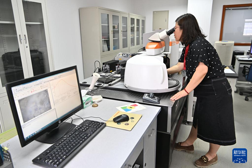 5月16日,國博文保院副院長成小林展示運用顯微激光拉曼光譜儀研究圓明園同樂園建筑群樣式雷燙樣文物的顏料組成。