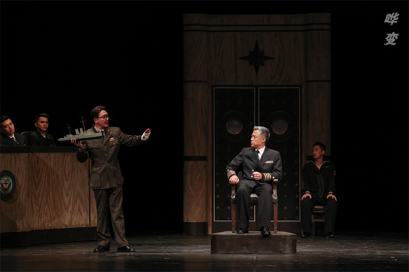 飾演魁格艦長的馮遠征從2006年接演這一角色。他認為自己這一代演員是在老藝術家們創造的高峰基礎上進行攀登?!斑@個角色為演員帶來的提升,是跨越性的?!眲≈锌衽為L密集的臺詞,緊張到“神經質”的狀態,對于演員來說是巨大的挑戰。而其中具有代表性的一段八分鐘獨白,更堪稱全劇經典段落。這段法庭“自辯”充滿著矛盾,但馮遠征看來,“看似不著邊際的事件在人物心中有著自己的邏輯?!碧鰜碚沓鰟”疽酝獾氖录?,代入人物的心理邏輯,就能呈現出人物當下的狀態,也讓觀眾看到演員在舞臺上塑造角色的魅力。