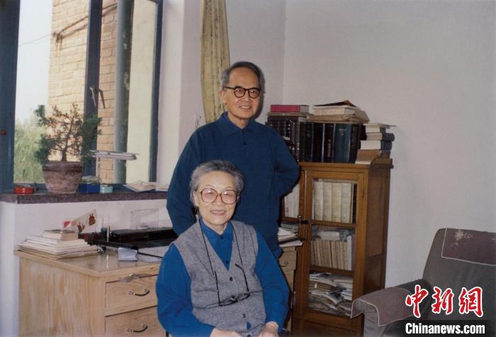 錢鍾書先生和楊絳先生在楊先生“唐詩日課”的習字桌前合影。人民文學出版社供圖