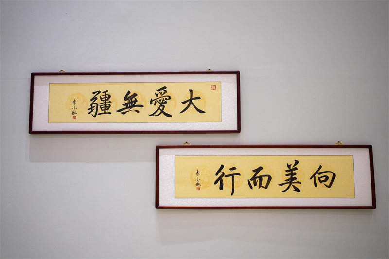 《愛在人間-詩琳畫卷》書畫展,是一部以詩書畫作品形式演繹,關于一位成功女性人生前半篇的“傳記”。這部傳記與眾不同,在于它不是用敘述性的文字寫成,而是用七言楹聯,以簡馭繁、以情寓理,將每一段值得記錄的人生經歷濃縮在18個字當中,反復細細品讀之余,方能領略創作者內外兼修的學識,剛柔并濟的處世哲學以及寬廣的胸懷。
