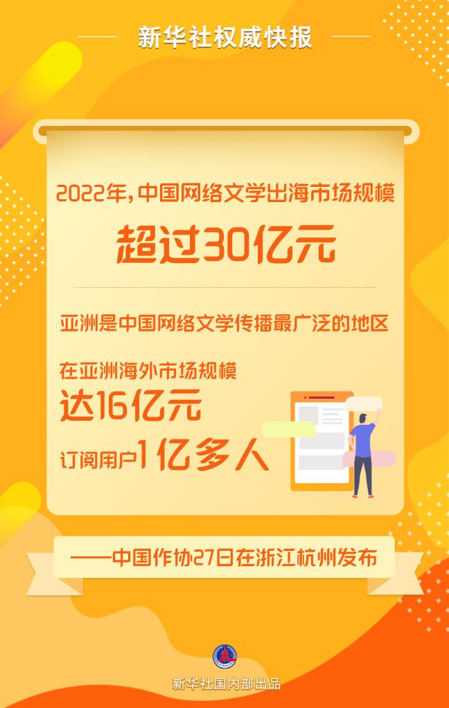 由中國作家協會等主辦的“2023中國國際網絡文學周”5月27日在浙江杭州開幕,開幕式上發布的《中國網絡文學在亞洲地區傳播發展報告》顯示,2022年,中國網絡文學出海市場規模超過30億元。