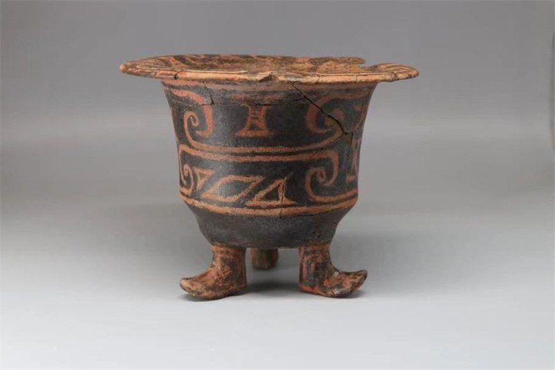 大坨頭文化M75出土的靴形足彩繪陶尊 (北京市文物局供圖)