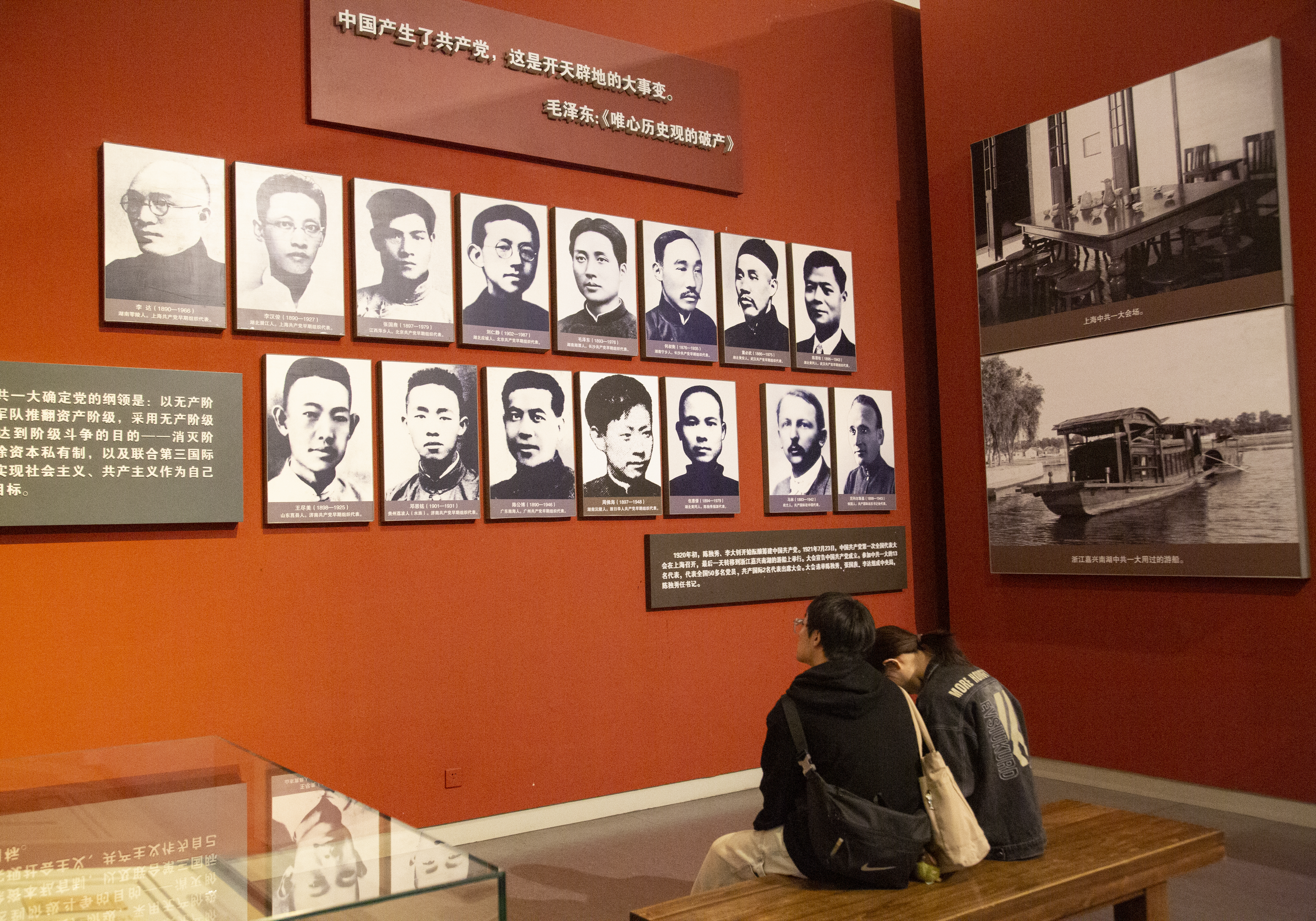 2023年5月6日,國博“復興之路”基本陳列,觀眾在參觀“中國共產黨的誕生及其政治主張”部分。攝影董芳/人民畫報