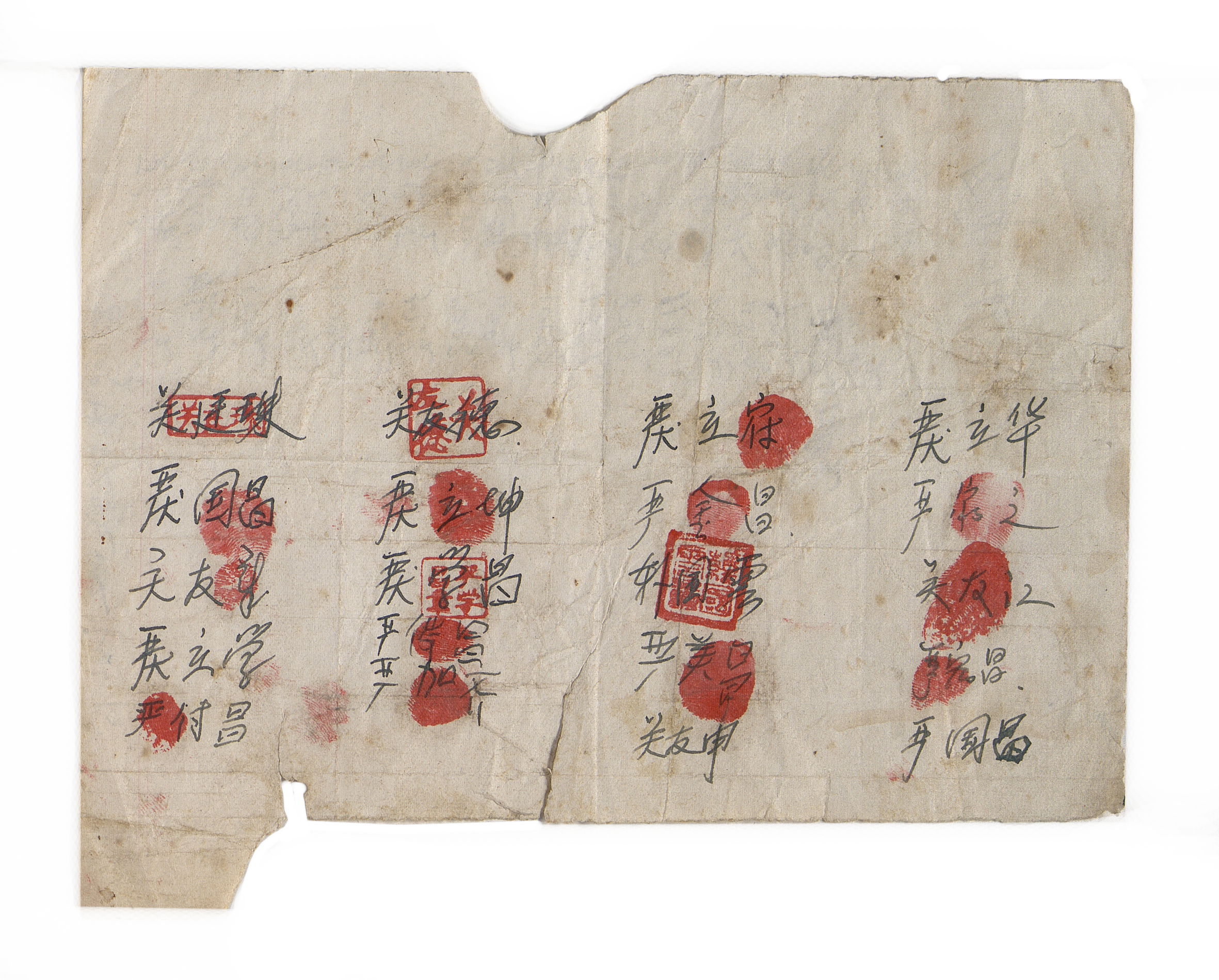 安徽省鳳陽縣小崗生產隊包干到戶合同書、1978年11月24日夜,安徽省鳳陽縣小崗生產隊20戶農民的18位代表聚集在村民嚴立華家,在一紙分田到戶的“秘密契約”上按下鮮紅的手印,實行農業“大包干”。隨后,生產隊的土地、耕牛、農具等按人頭分到了各家各戶,“大包干”由此開啟。18枚紅手印催生的家庭聯產承包責任制,最終上升為我國農村基本經營制度。中國國家博物館供圖