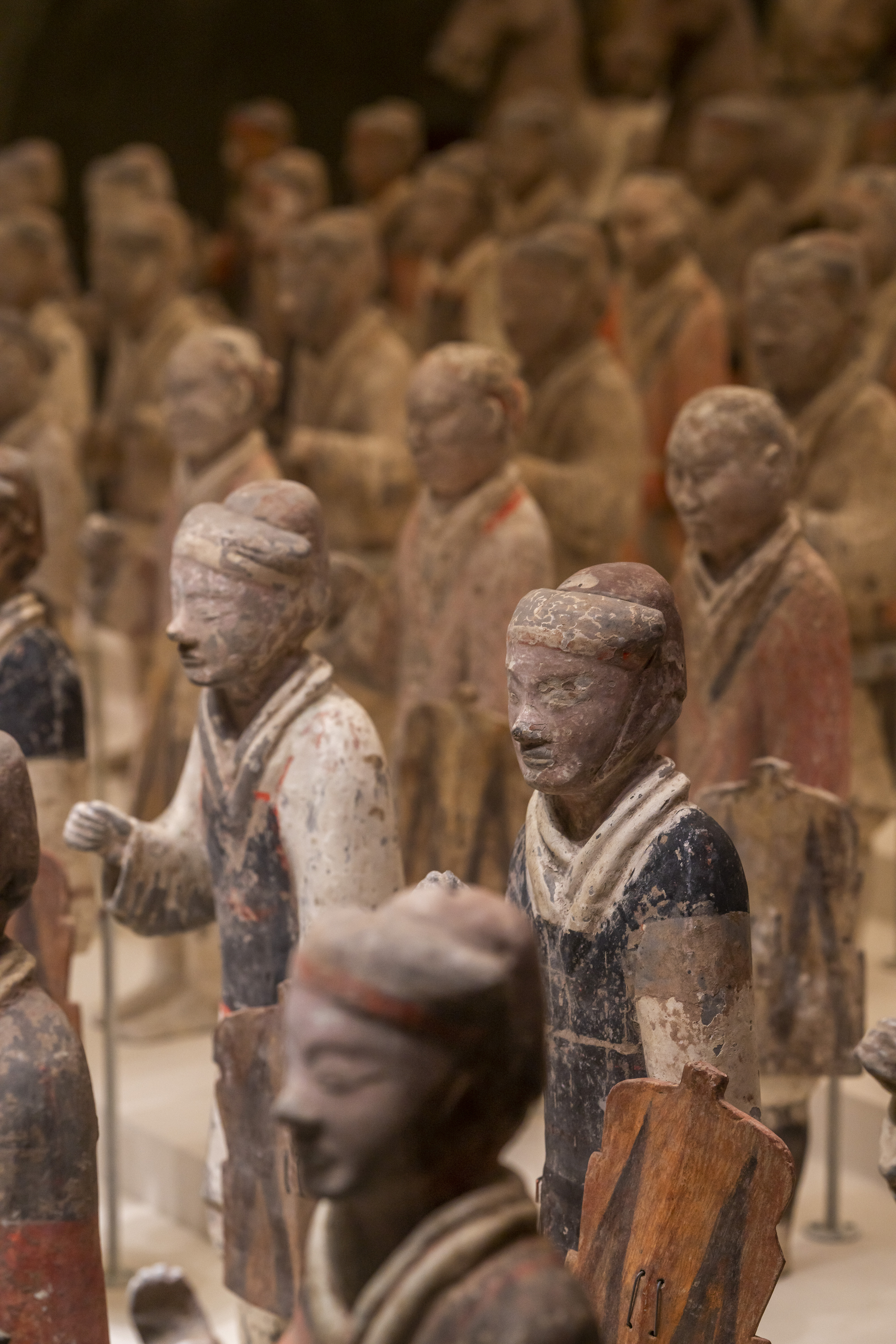 彩繪陶兵馬俑的服飾、鎧甲、馬的毛色及韉、轡等均施彩繪,其彩繪之細致、數量之多、配套之全、品類之繁新、步武之嚴整,為漢代出土文物所罕見。整批陶兵馬俑生動反映了當時軍隊正處于從車騎并用向以騎兵為主力變化的關鍵時期。攝影郭莎莎/人民畫報
